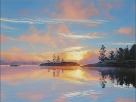 The sun rising and the closing out of each day marked by beautiful sunsets, the paintings here capture the subtlety of colour and shade which challenge the artist.