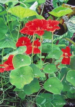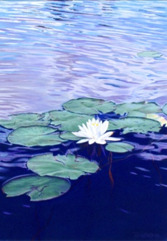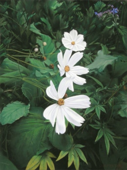 These paintings focus on close ups of flowers in their natural settings.
